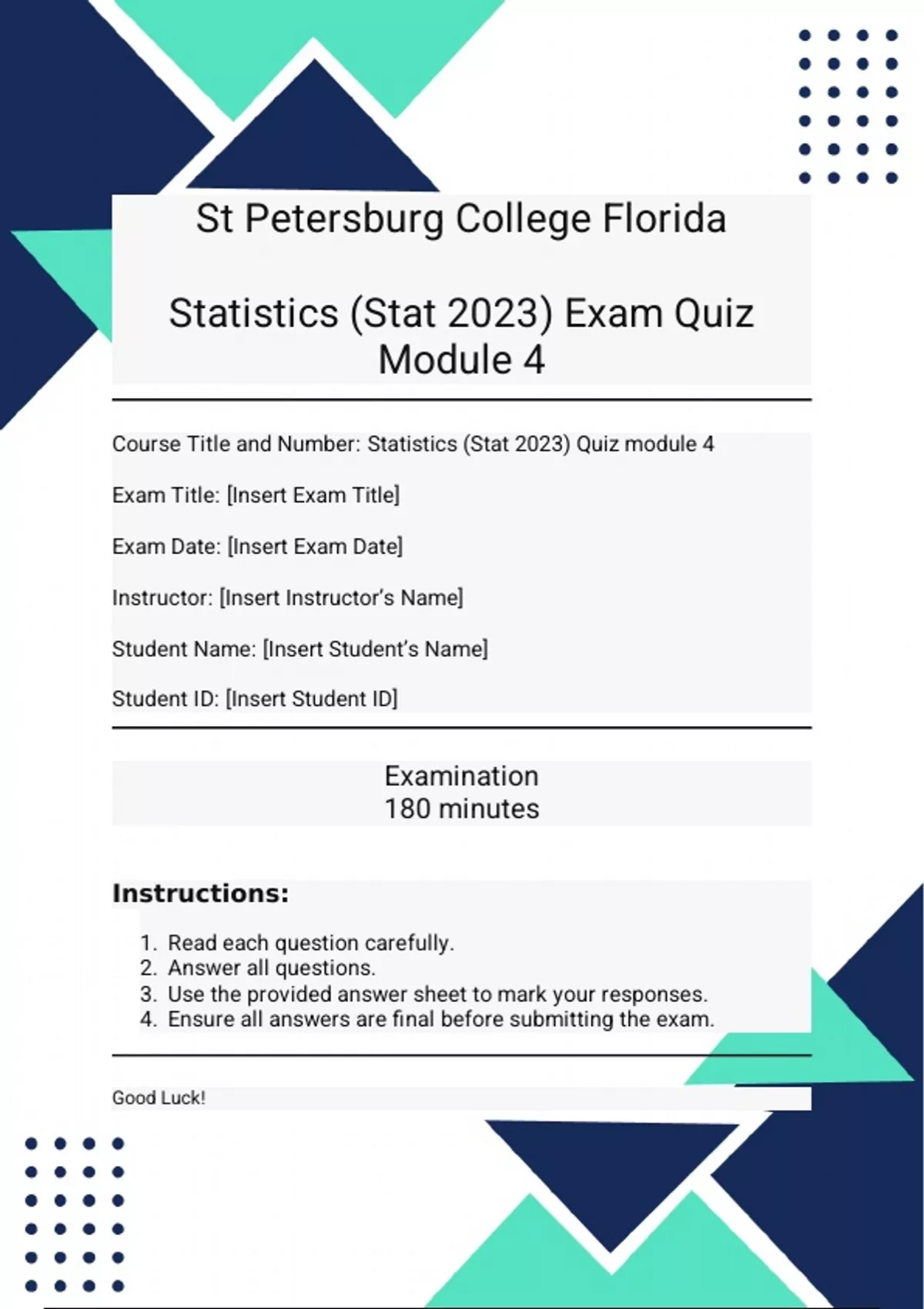 Course Title and Number: Statistics (Stat 2023) Quiz module 4