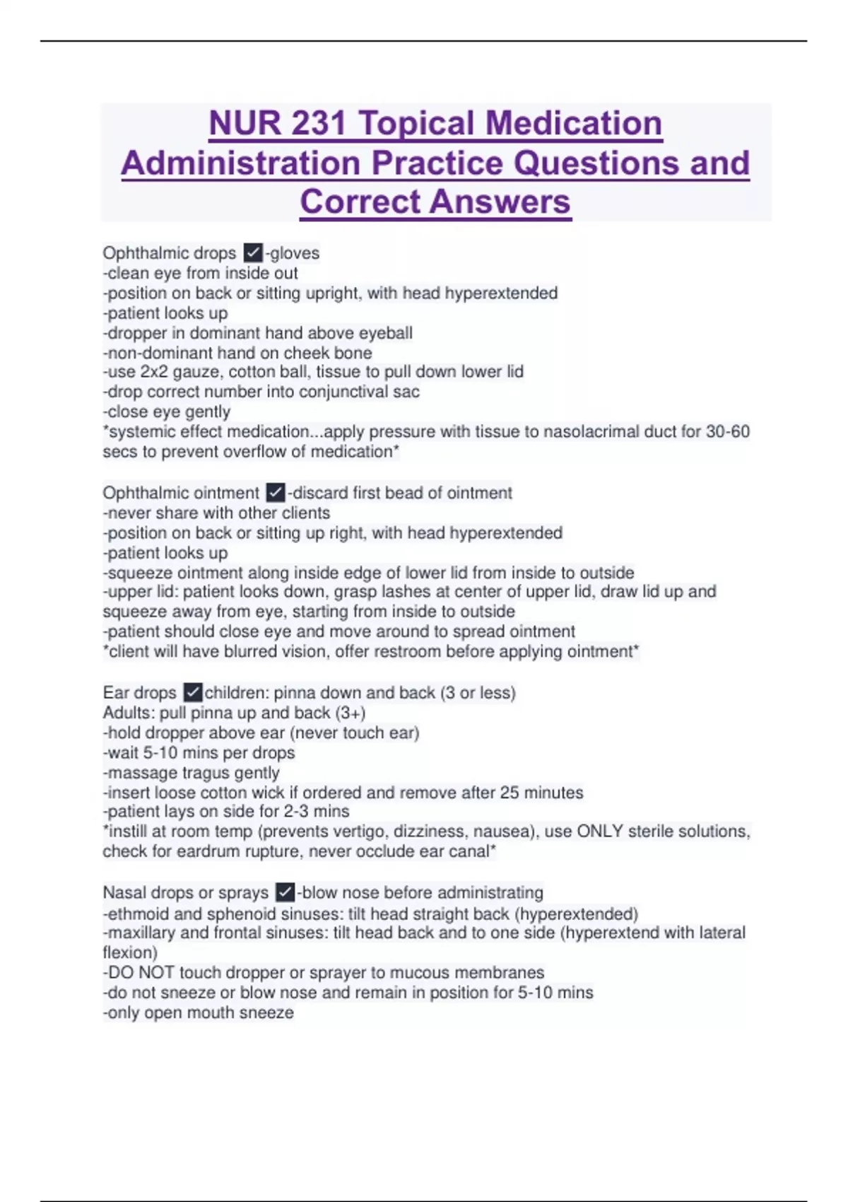 *instill at room temp (prevents vertigo, dizziness, nausea), use ONLY sterile solutions,
