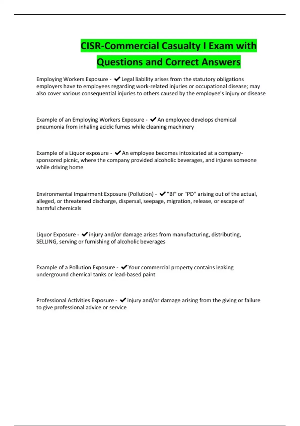CISR-Commercial Casualty I Exam with