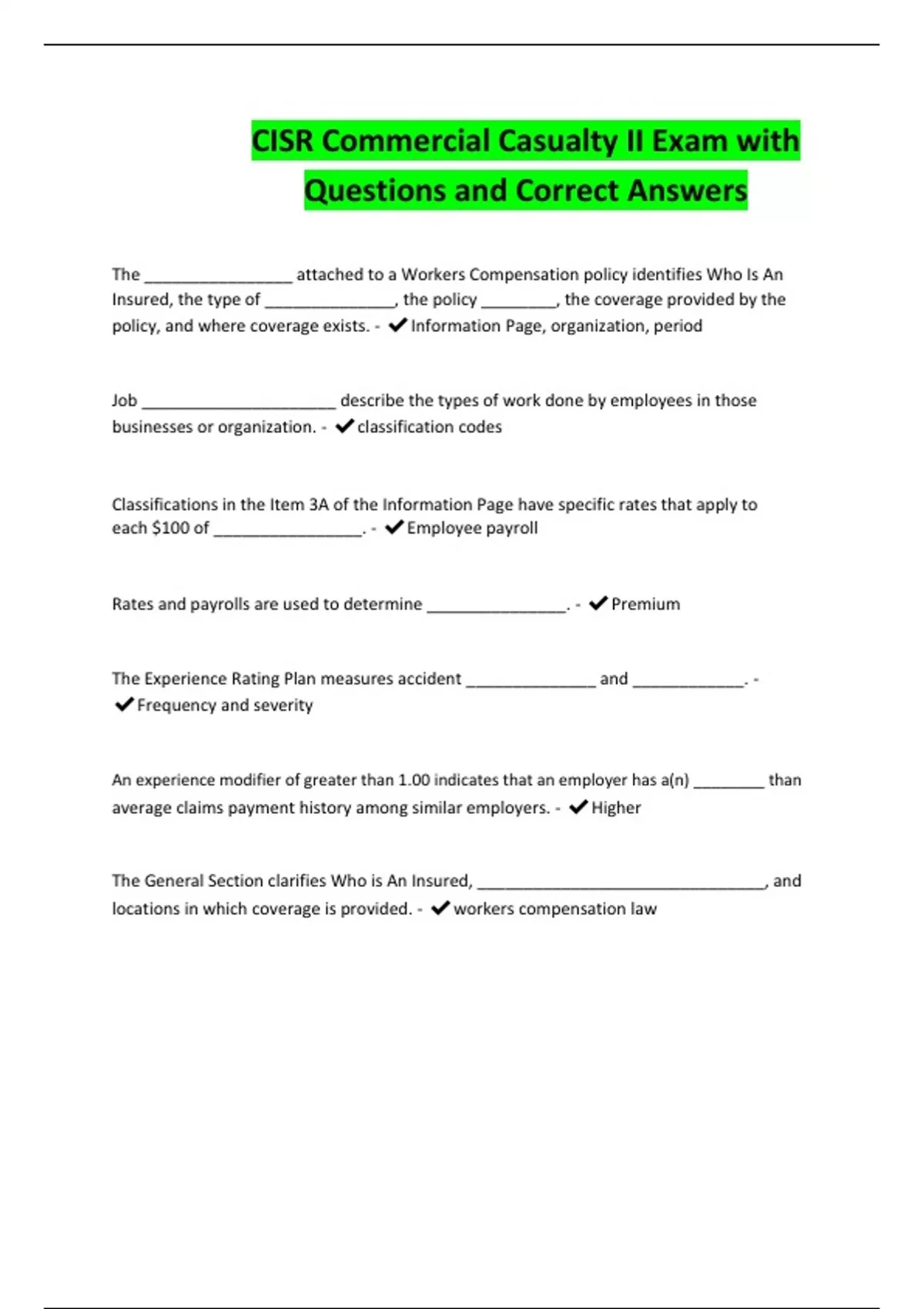 CISR Commercial Casualty II Exam with