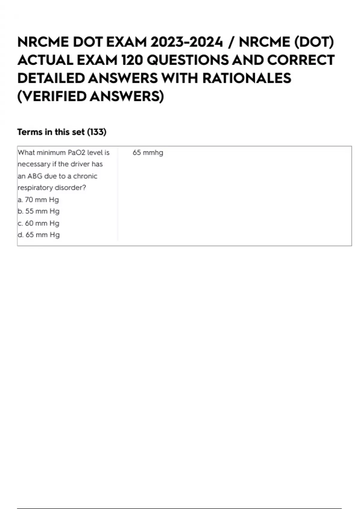 NRCME DOT EXAM / NRCME (DOT) ACTUAL EXAM 120 QUESTIONS AND CORRECT DETAILED ANSWERS WITH RATIONALES (VERIFIED ANSWERS)