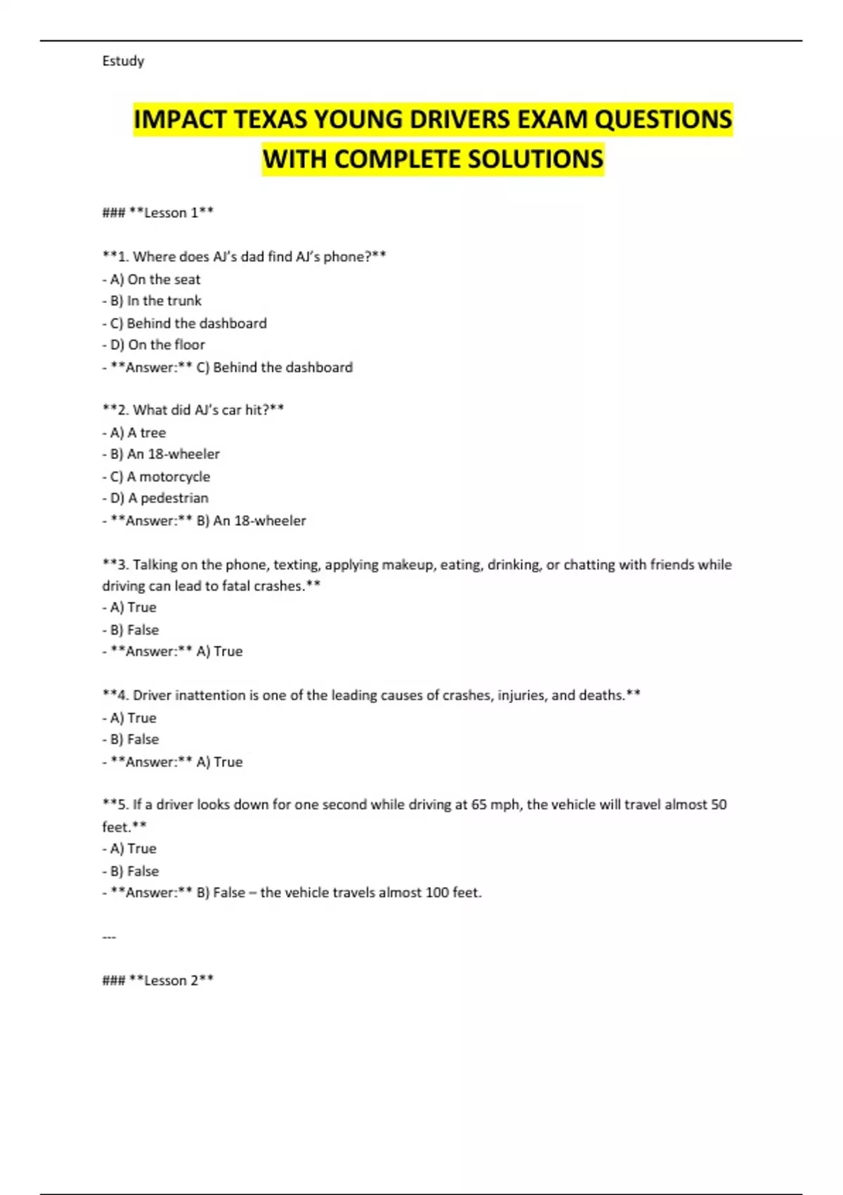 IMPACT TEXAS YOUNG DRIVERS EXAM QUESTIONS WITH COMPLETE SOLUTIONS