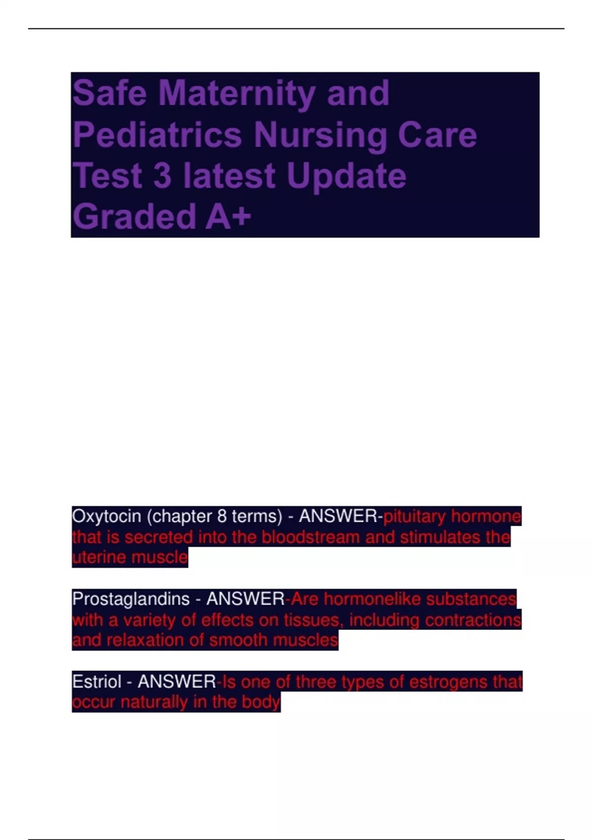 Estriol - ANSWER-Is one of three types of estrogens that