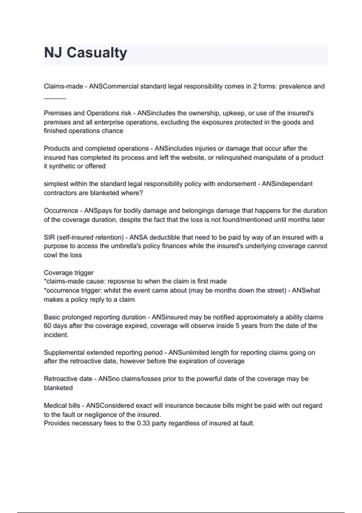 Claims-made - ANSCommercial standard legal responsibility comes in 2 forms: prevalence and