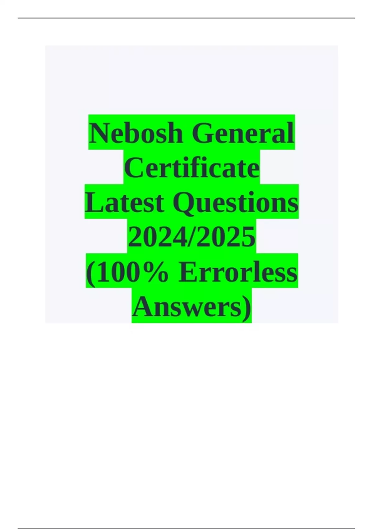 Nebosh General Certificate Latest Questions 2024/2025 (100- Errorless Answers)