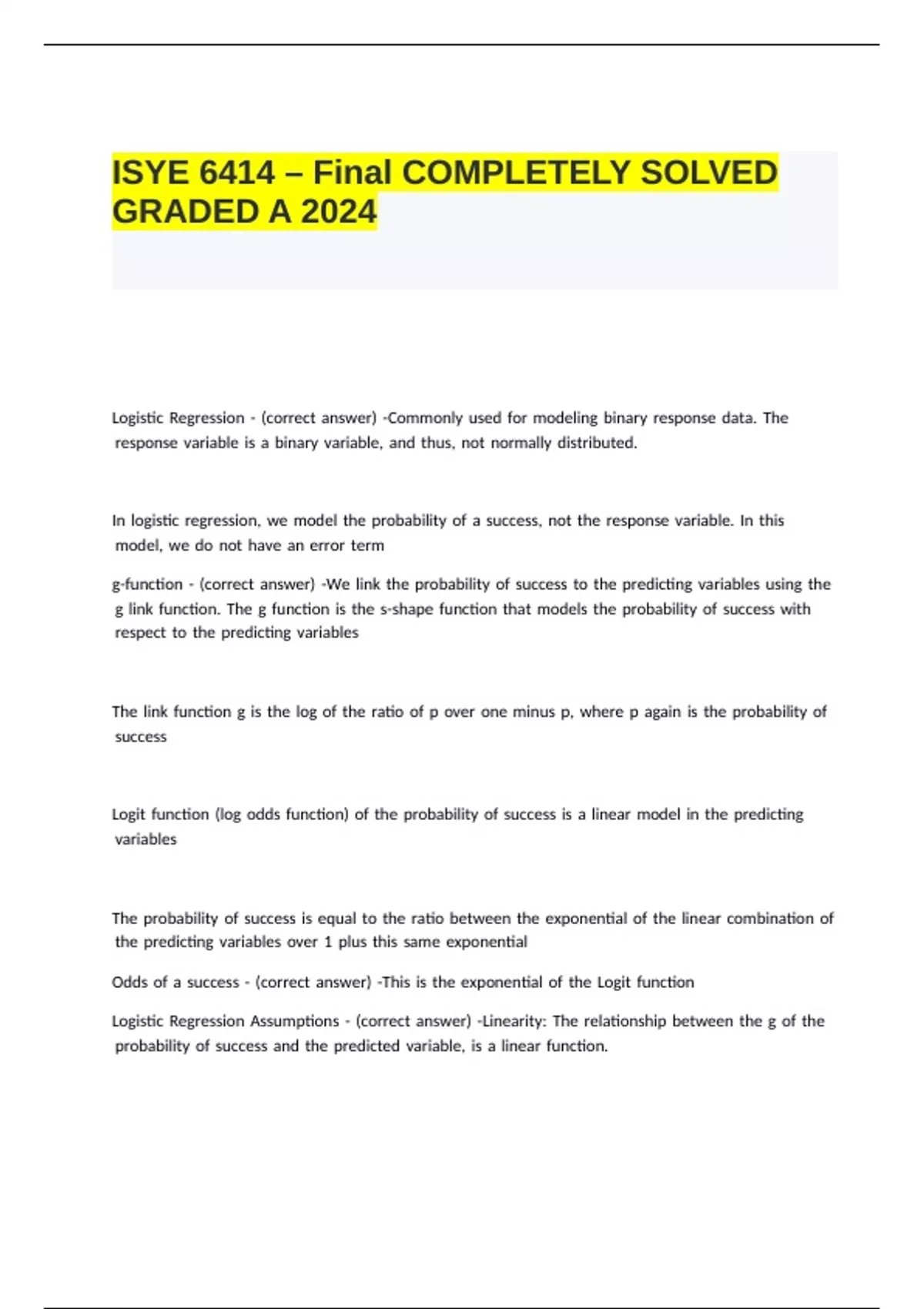 Linearity iAssumption i- i(correct ianswer) i-The iLogit itransformation iof ithe iprobability iof isuccess iis ia