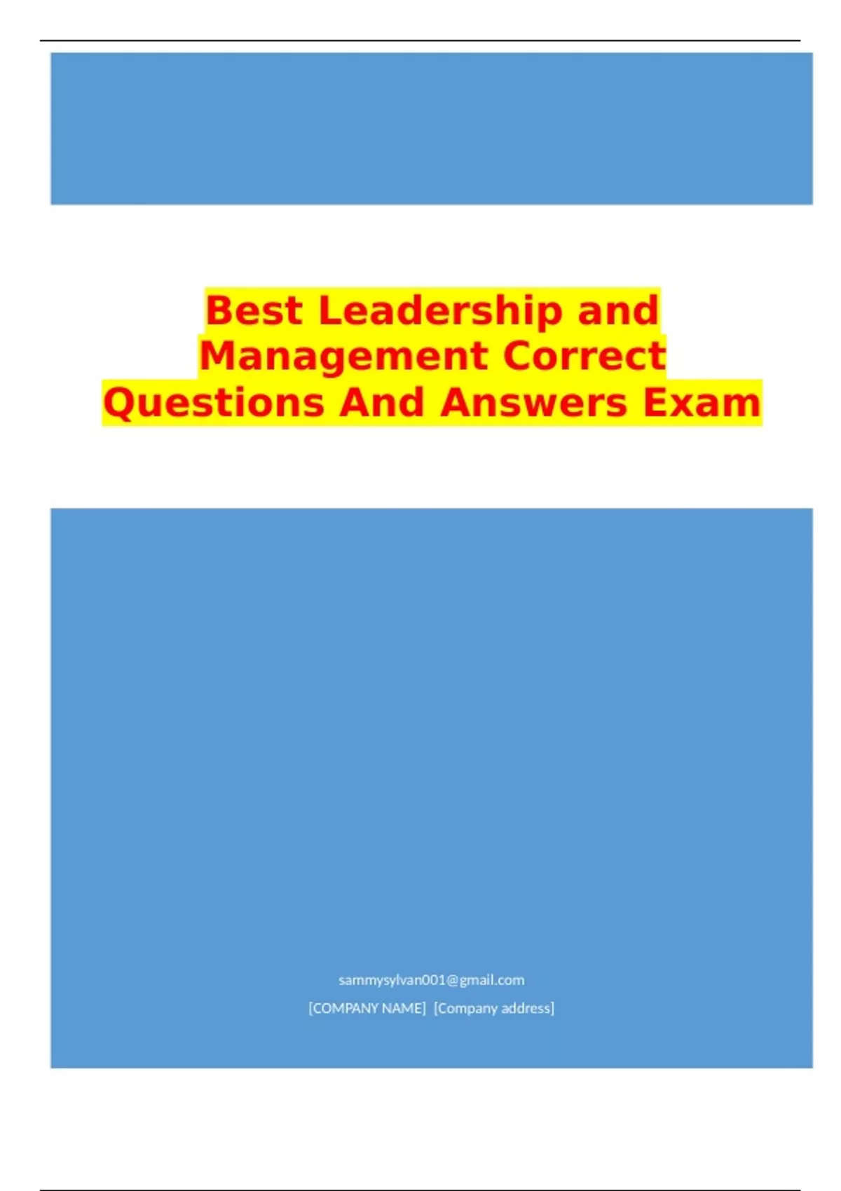 Best Leadership and Management Correct Questions And Answers Exam