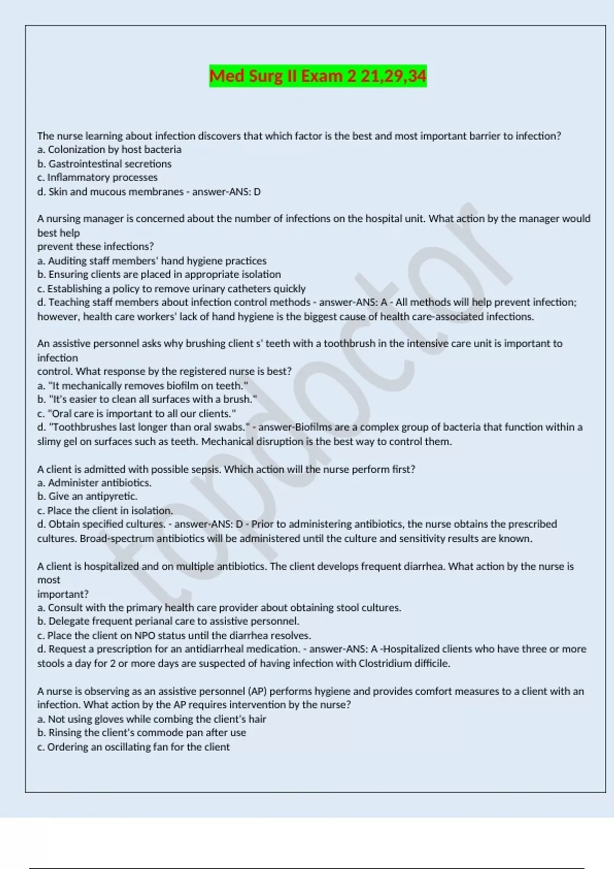d. Teaching staff members about infection control methods - answer-ANS: A - All methods will help prevent infection;