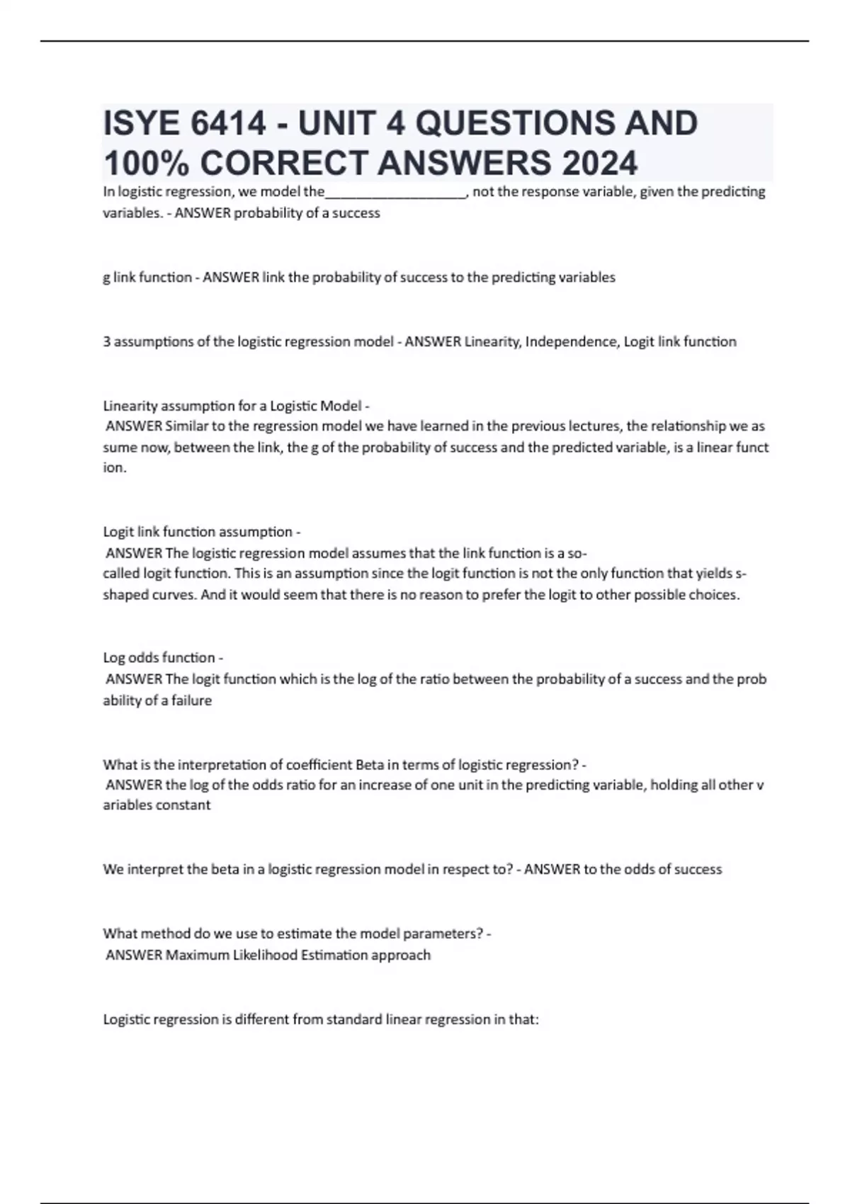 ISYE 6414 - UNIT 4 QUESTIONS AND 100% CORRECT ANSWERS 2024