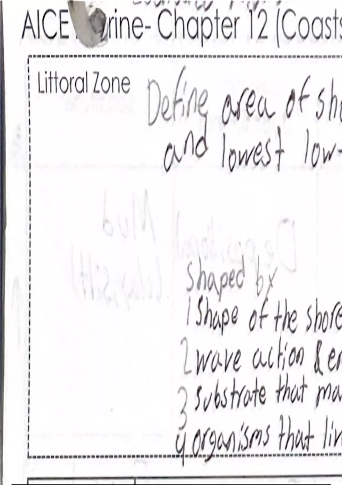 Sketch notes about Ch12 coasts consisting of the littoral zone and shores,(2) pages, simplified chart notes that organizes key points