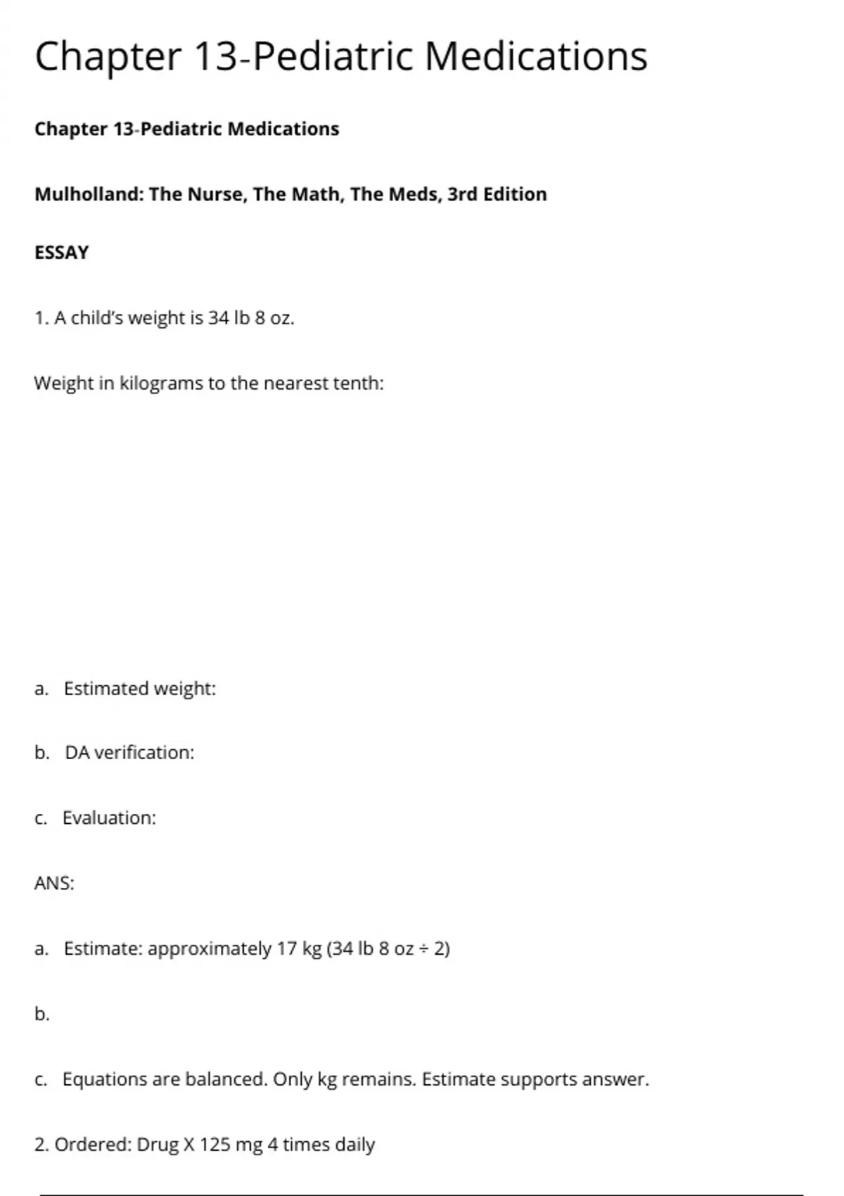 1. A child’s weight is 34 lb 8 oz.