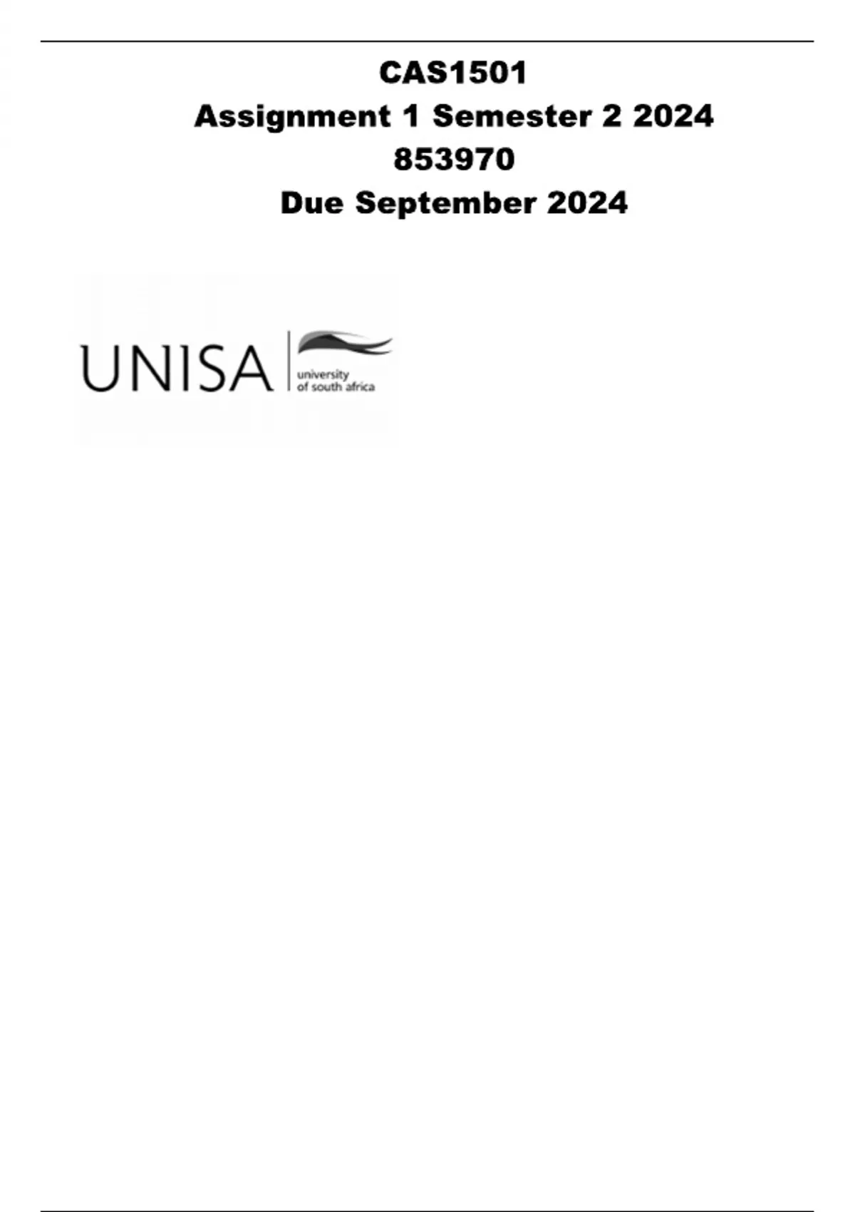 CAS1501 Assignment 1 Semester 2 2024 - Due September 2024.