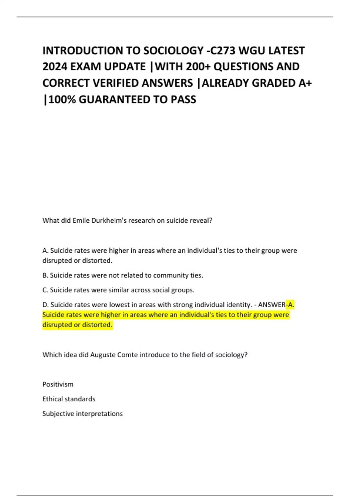 D. Suicide rates were lowest in areas with strong individual identity. - ANSWER-A.