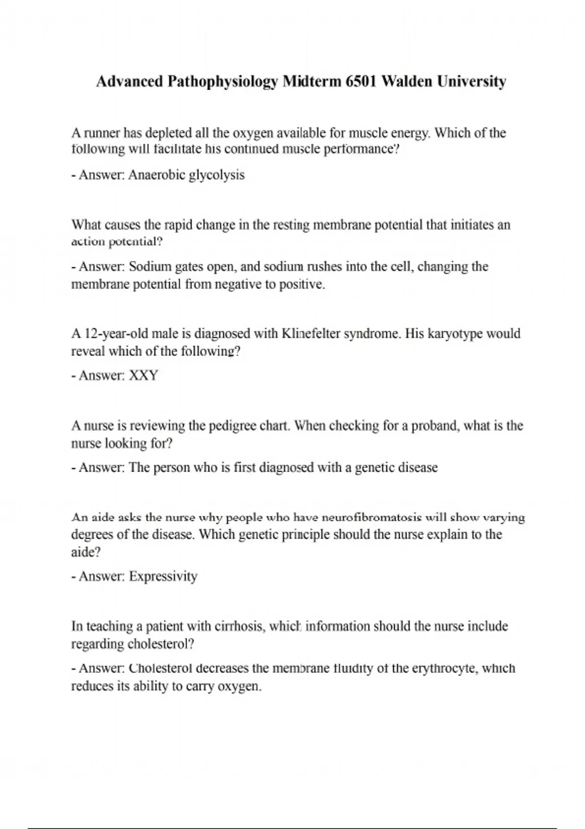 Advanced Pathophysiology Midterm NURS 6501 Walden University