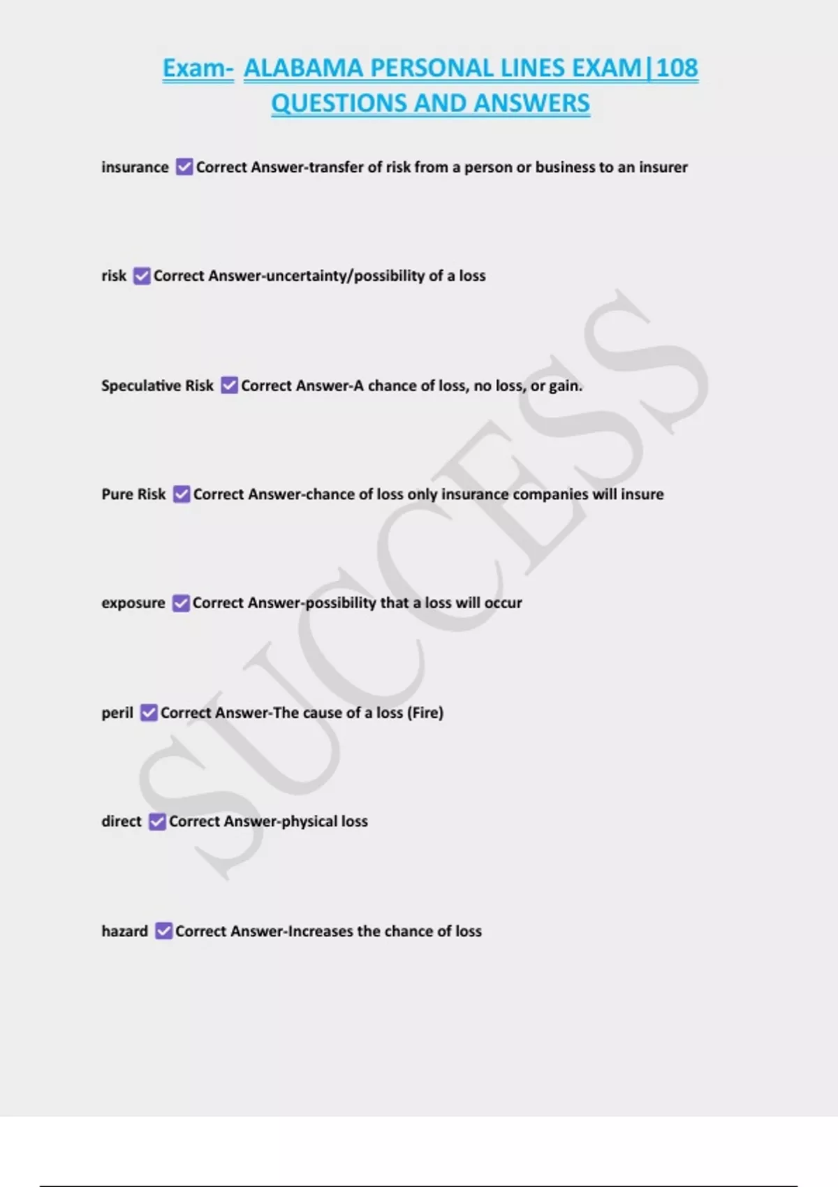 Exam- ALABAMA PERSONAL LINES EXAM|108 QUESTIONS AND ANSWERS