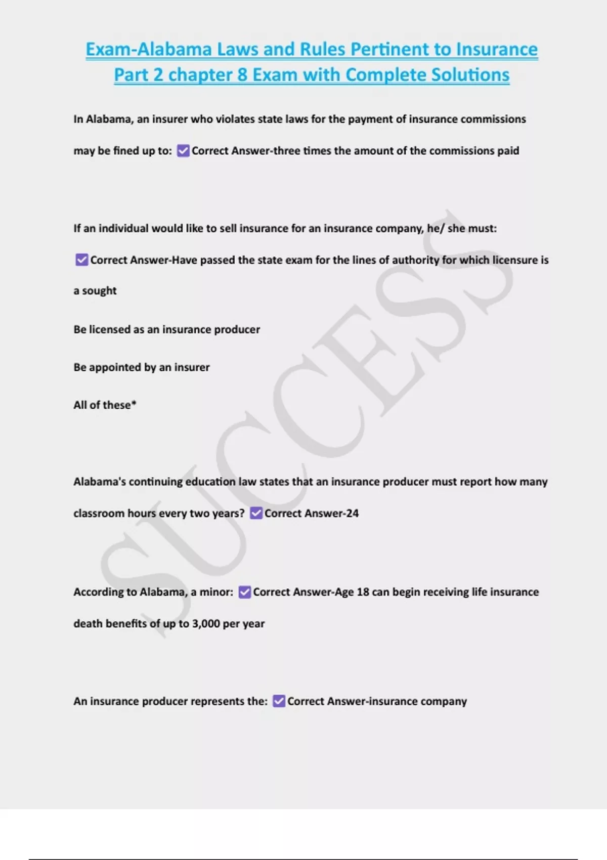 , Exam-Alabama Laws and Rules Pertinent to Insurance