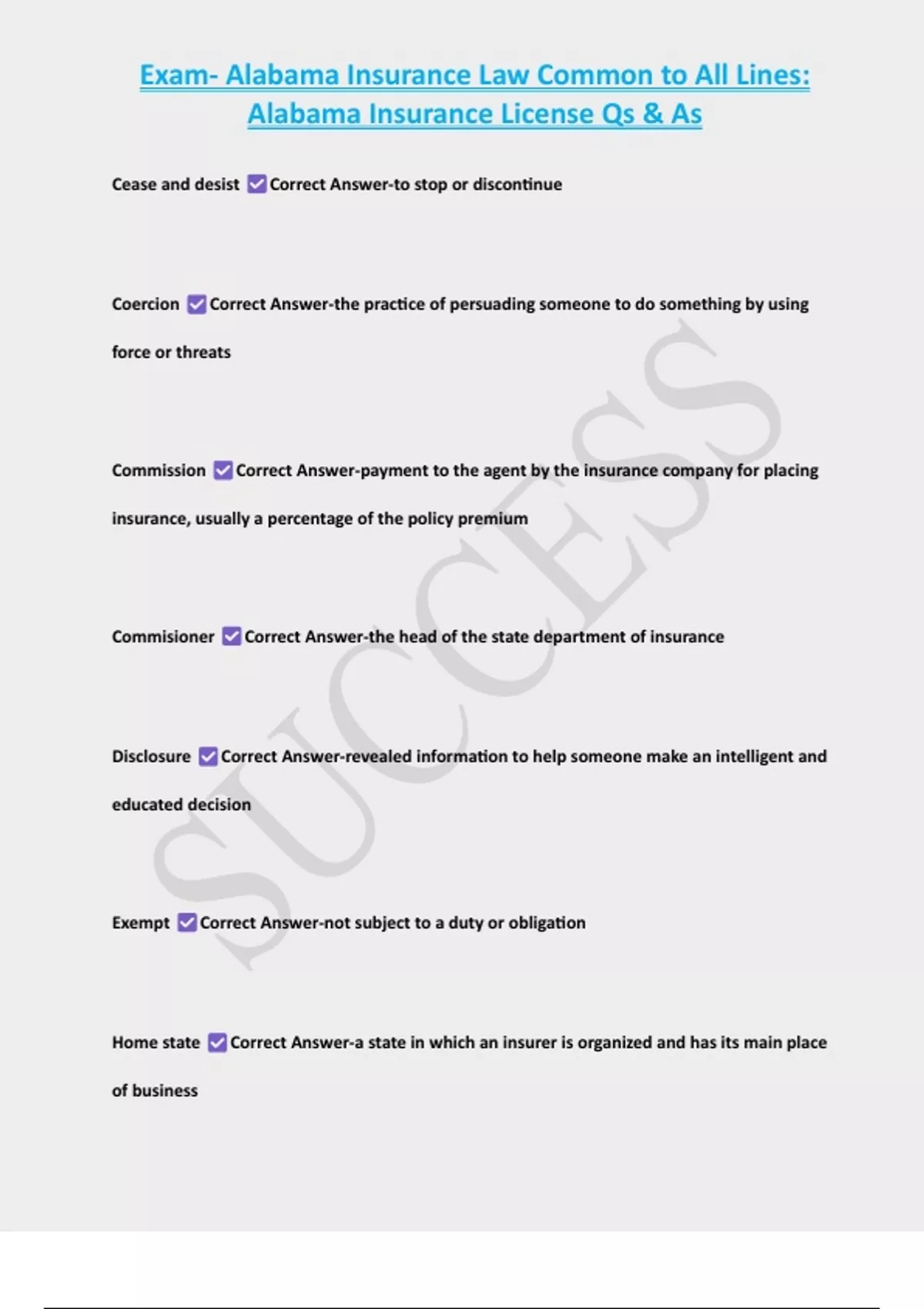 , Exam- Alabama Insurance Law Common to All Lines: