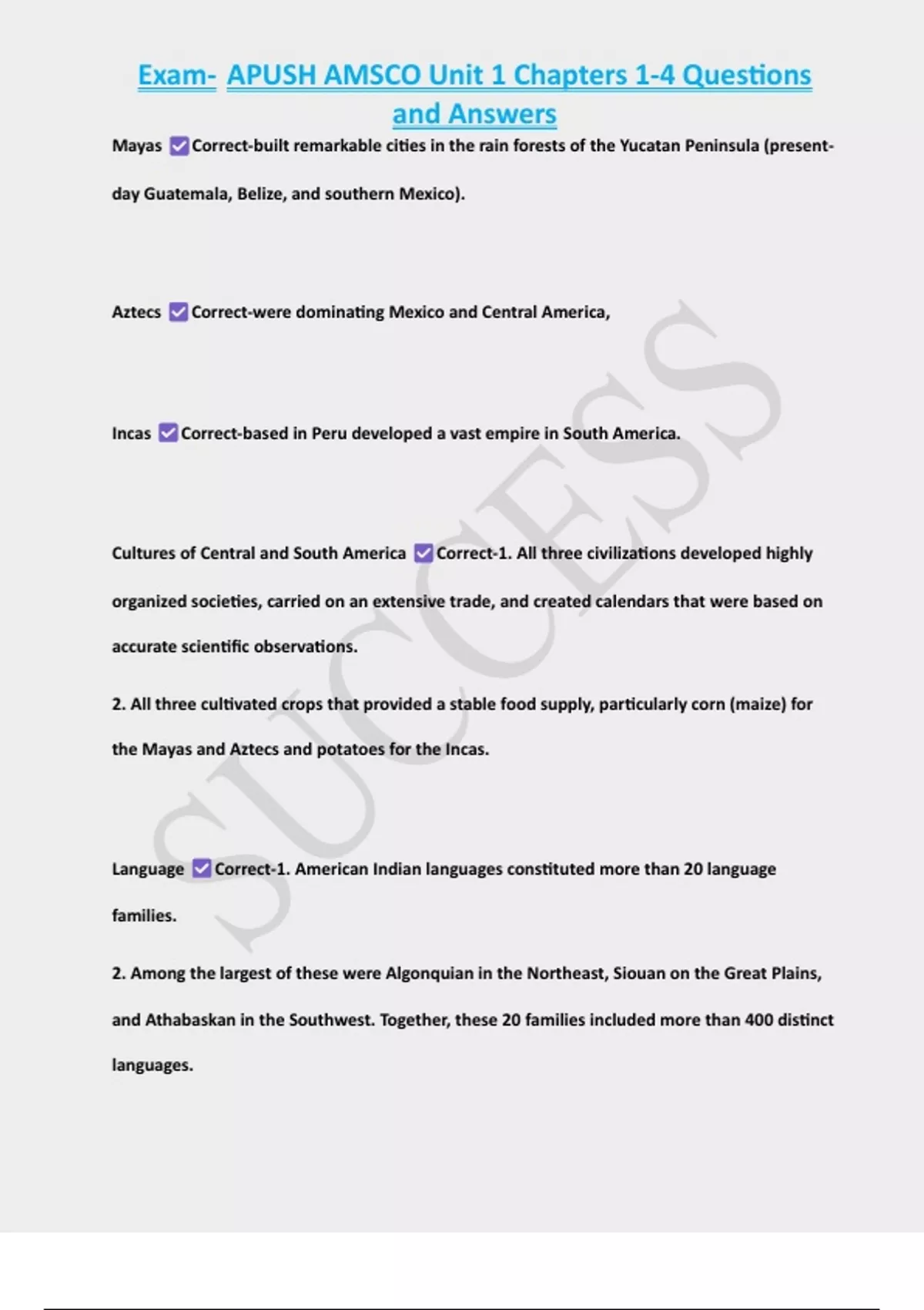 Exam- APUSH AMSCO Unit 1 Chapters 1-4 Questions and Answers