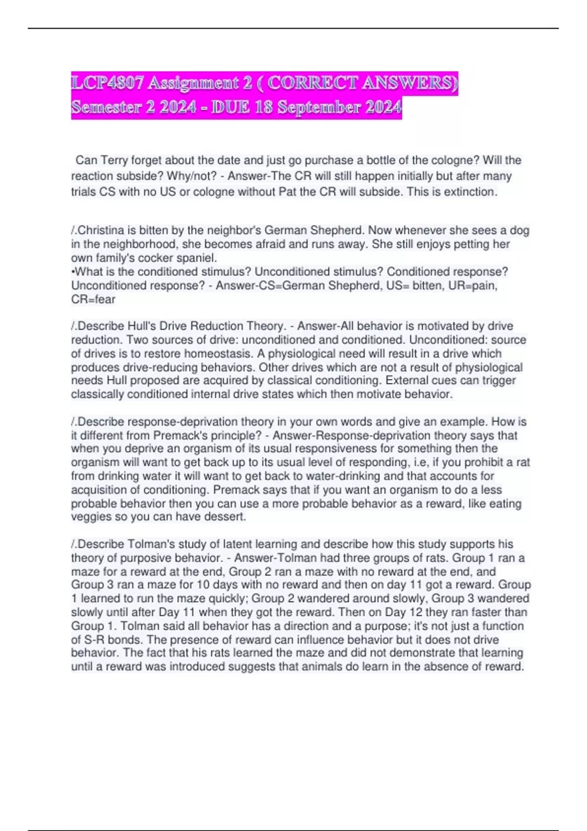 /.Describe Hull's Drive Reduction Theory. - Answer-All behavior is motivated by drive