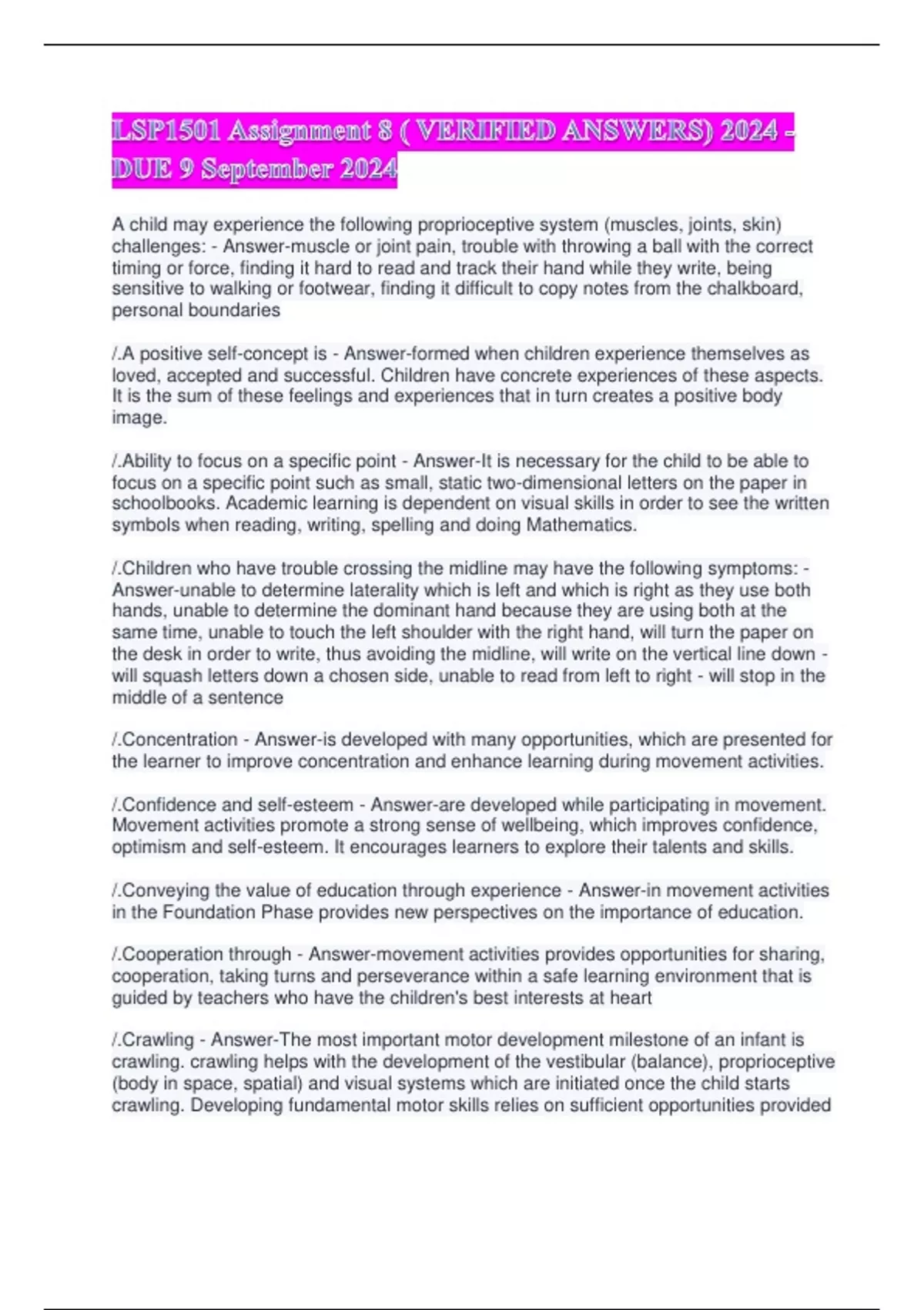 /.Essential learning which takes place through movement - Answer-Children from a