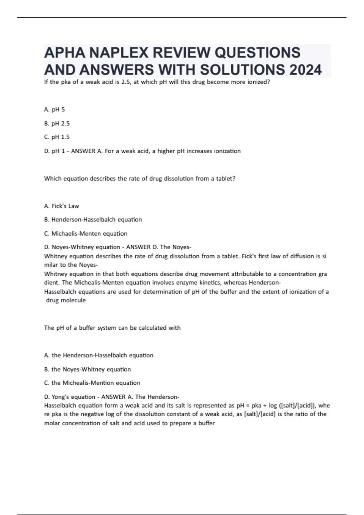 ,IfOtheOpkaOofOaOdrugOisO5,OatOwhichOofOtheOfollowingOpHOvaluesOdoOtheOionicOandOnonionicOformsOofOtheOdr
