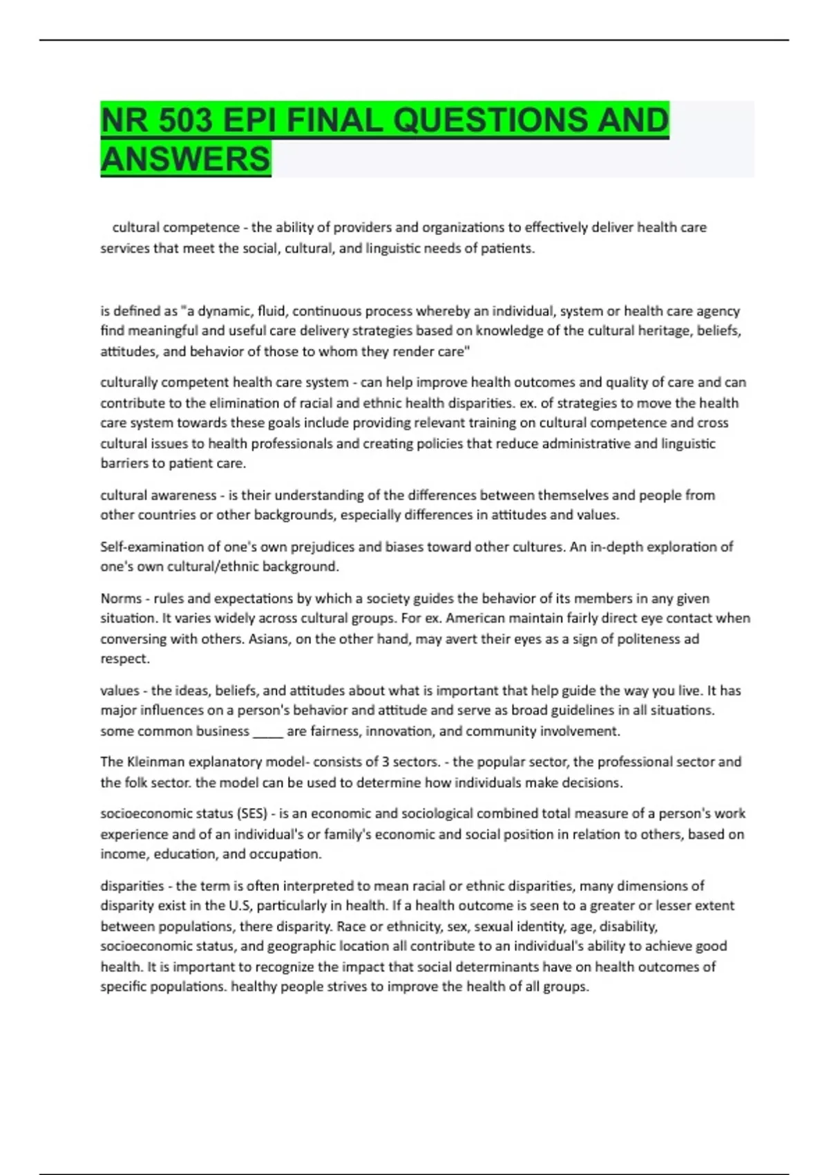 disparity exist in the U.S, particularly in health. If a health outcome is seen to a greater or lesser extent