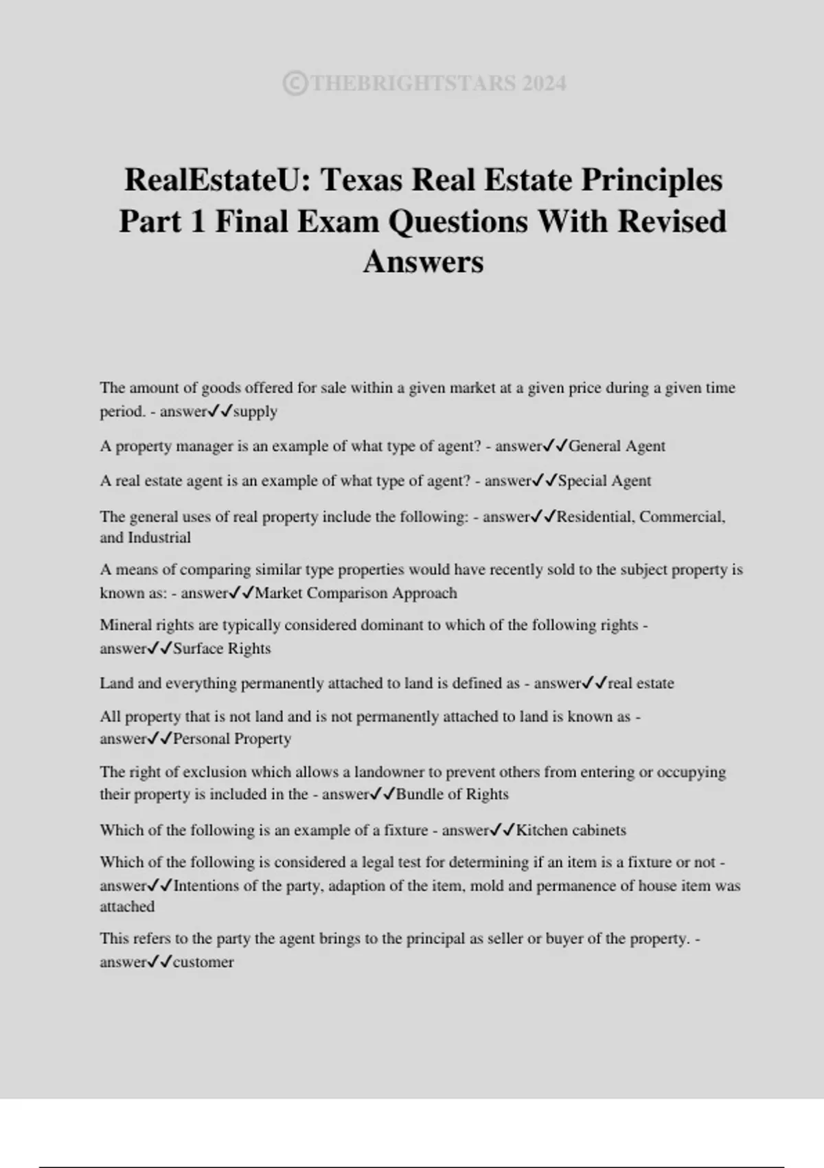 Land and everything permanently attached to land is defined as - answer✔✔real estate