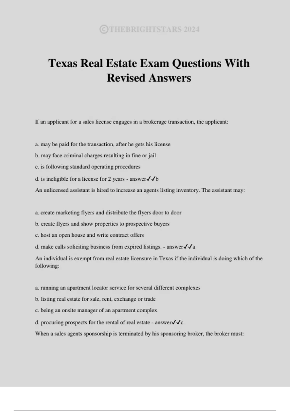 Texas Real Estate Exam Questions With