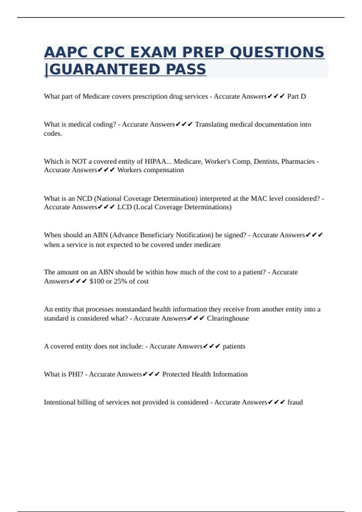 Accurate Answers✔✔✔ LCD (Local Coverage Determinations)