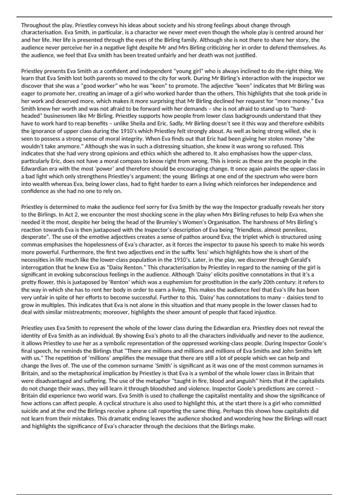 characterisation. Eva Smith, in particular, is a character we never meet even though the whole play is centred around her