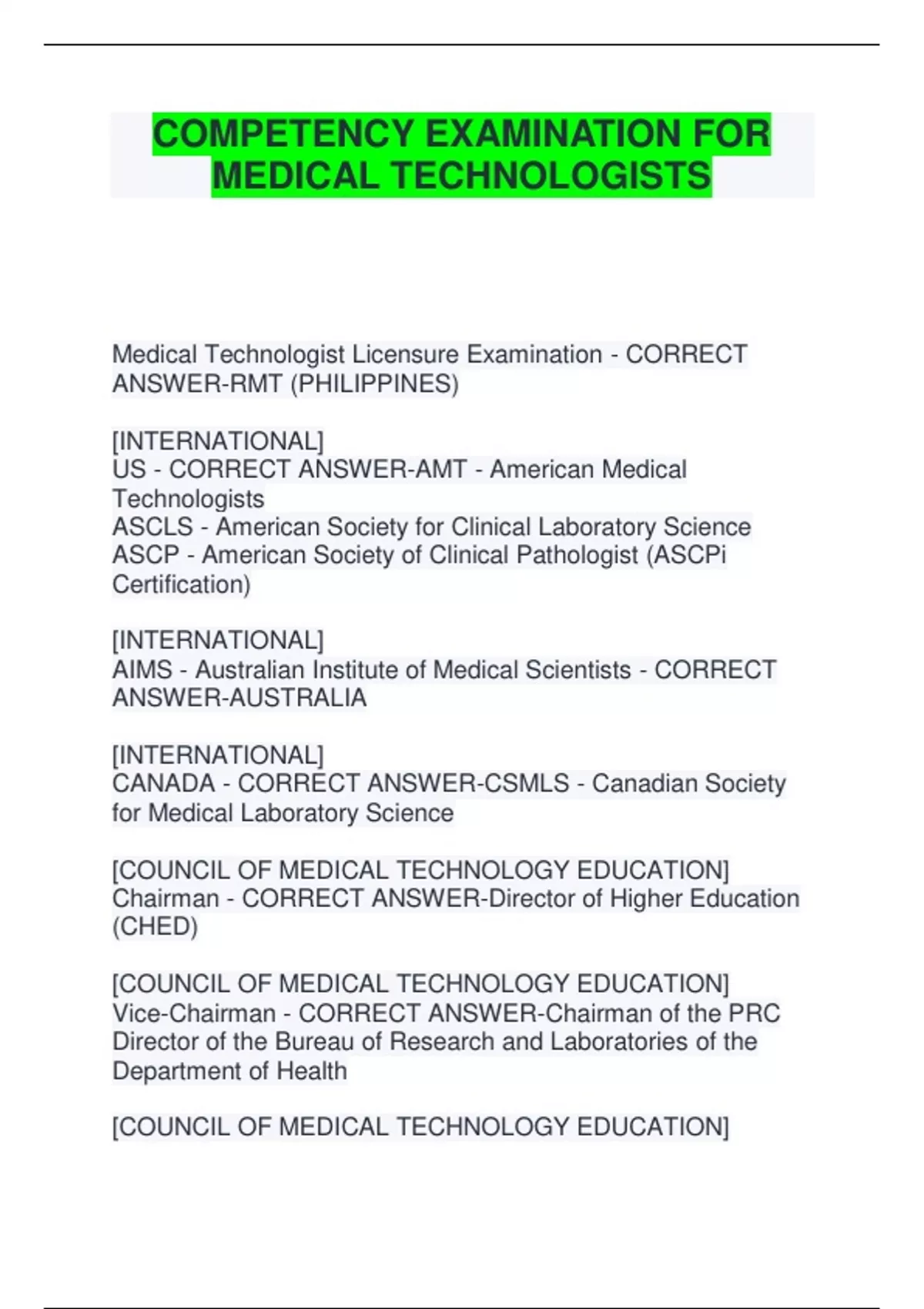 1ST BOARD OF MEDICAL TECHNOLOGY - CORRECT