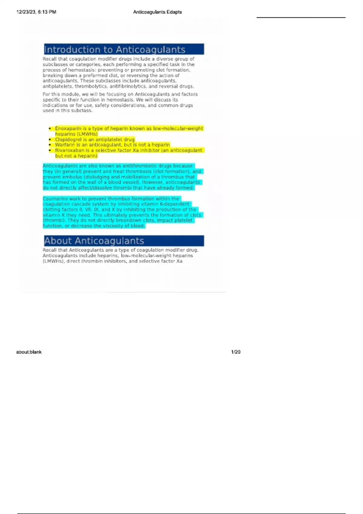 Anticoagulants Edapt Questions (All correct answers, Already graded A+) Exam 2024/2025 Chamberlain College of Nursing NR 507