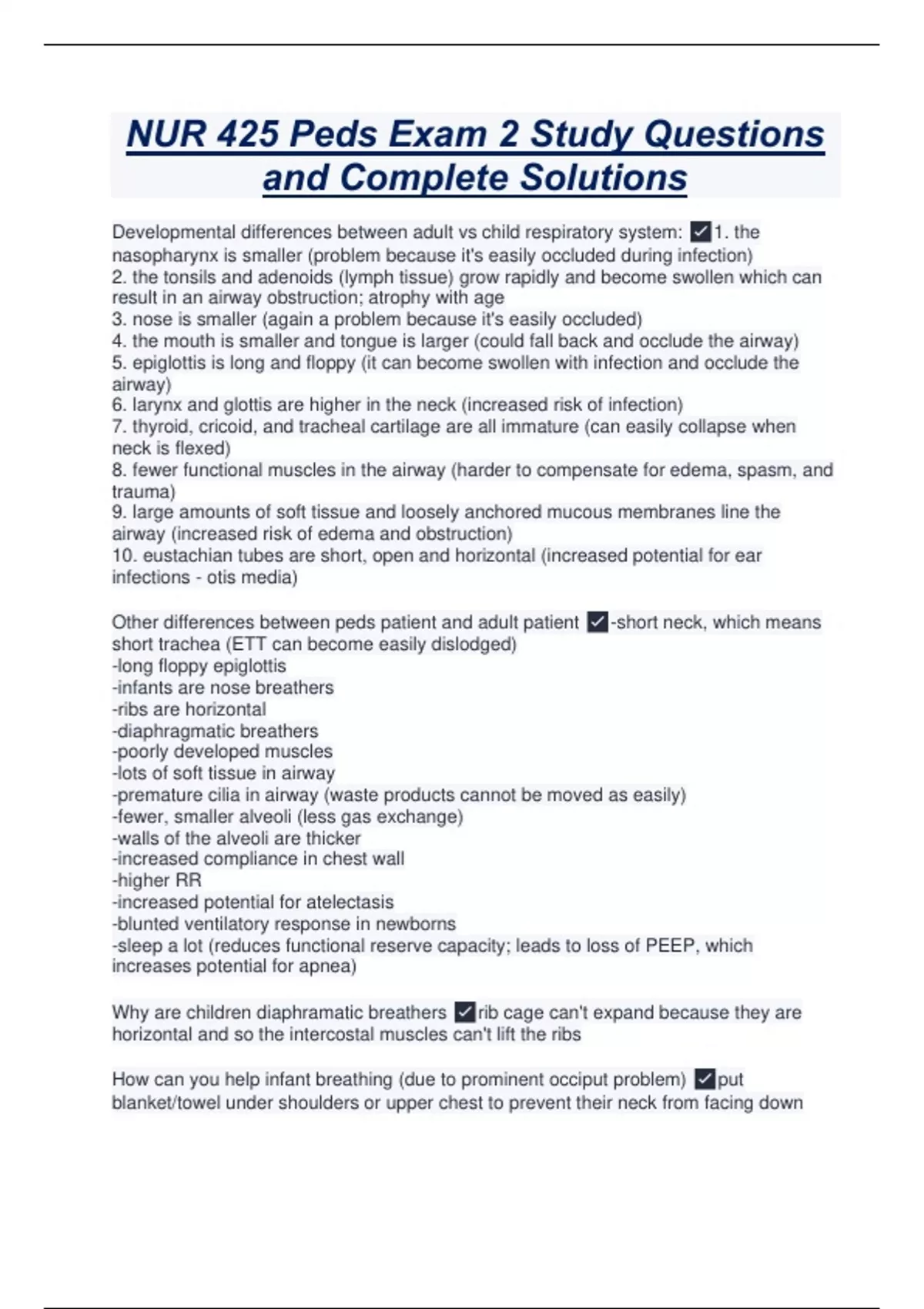 Developmental differences between adult vs child respiratory system: ✅1. the