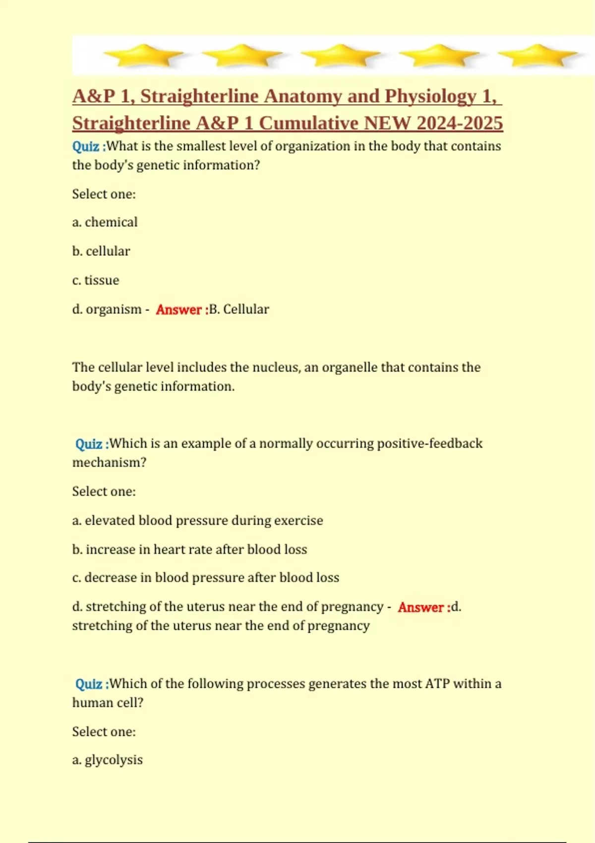 A&P 1, Straighterline Anatomy and Physiology 1, Straighterline A&P 1 Cumulative NEW