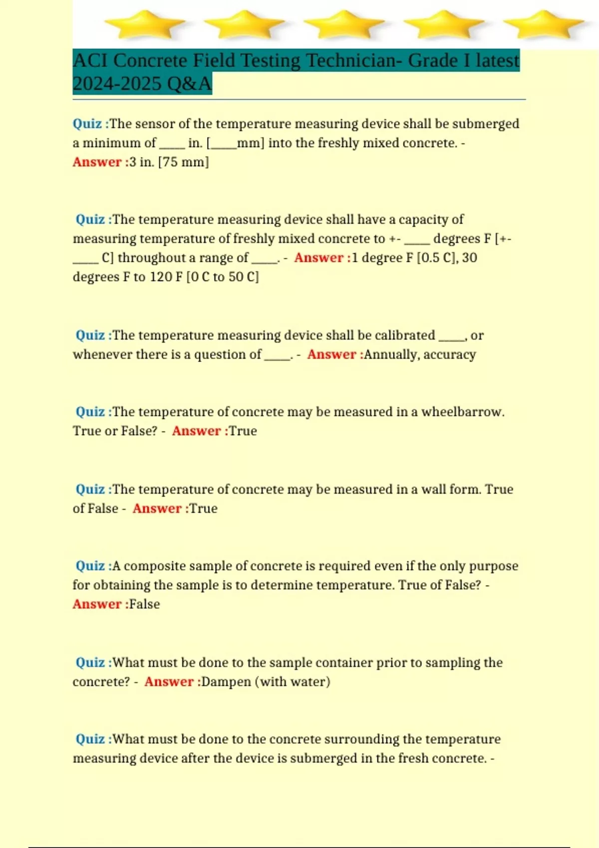 Quiz :The temperature of concrete is reported to the nearest _____ degrees