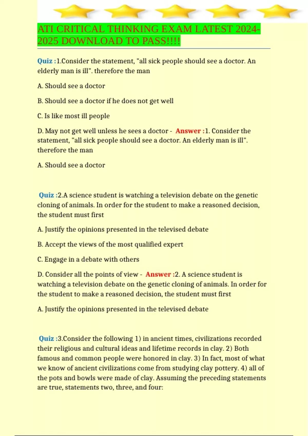 Quiz :1.Consider the statement, "all sick people should see a doctor. An