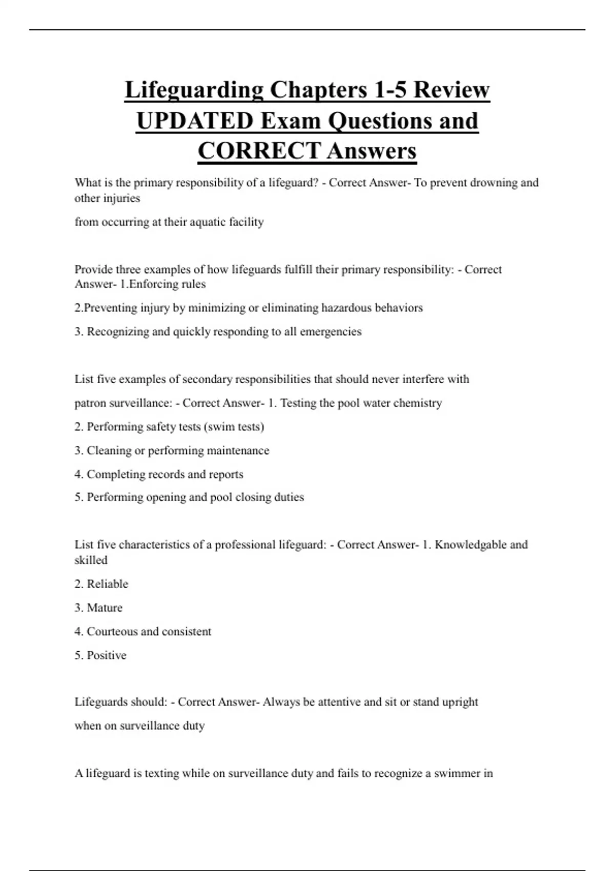 List five characteristics of a professional lifeguard: - Correct Answer- 1. Knowledgable and