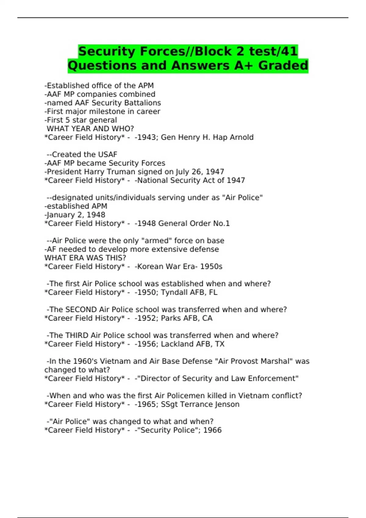 *Career Field History* - -1943; Gen Henry H. Hap Arnold