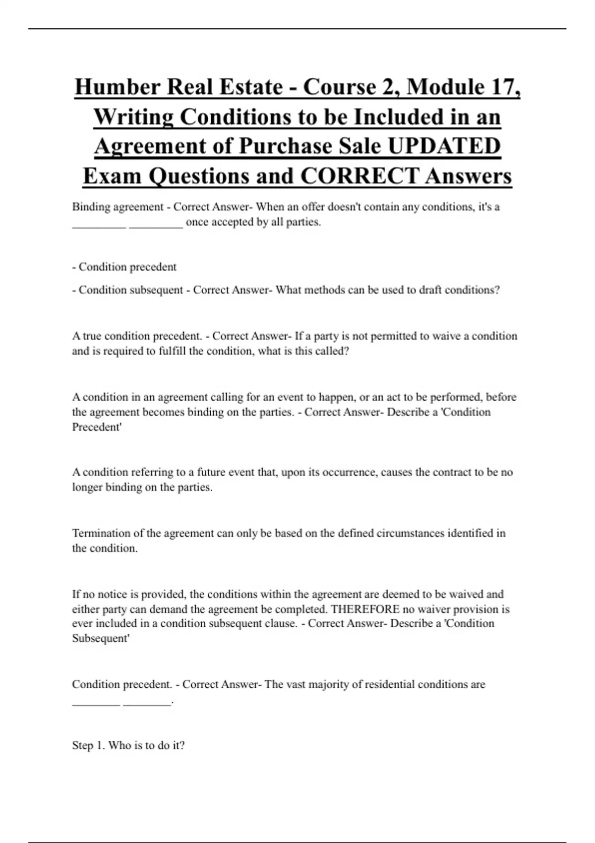 Condition precedent. - Correct Answer- The vast majority of residential conditions are