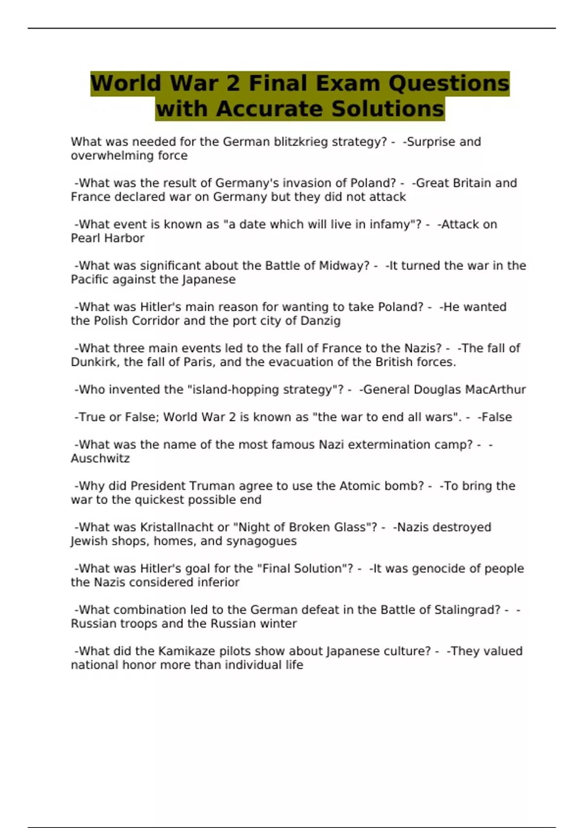 World War 2 Final Exam Questions
