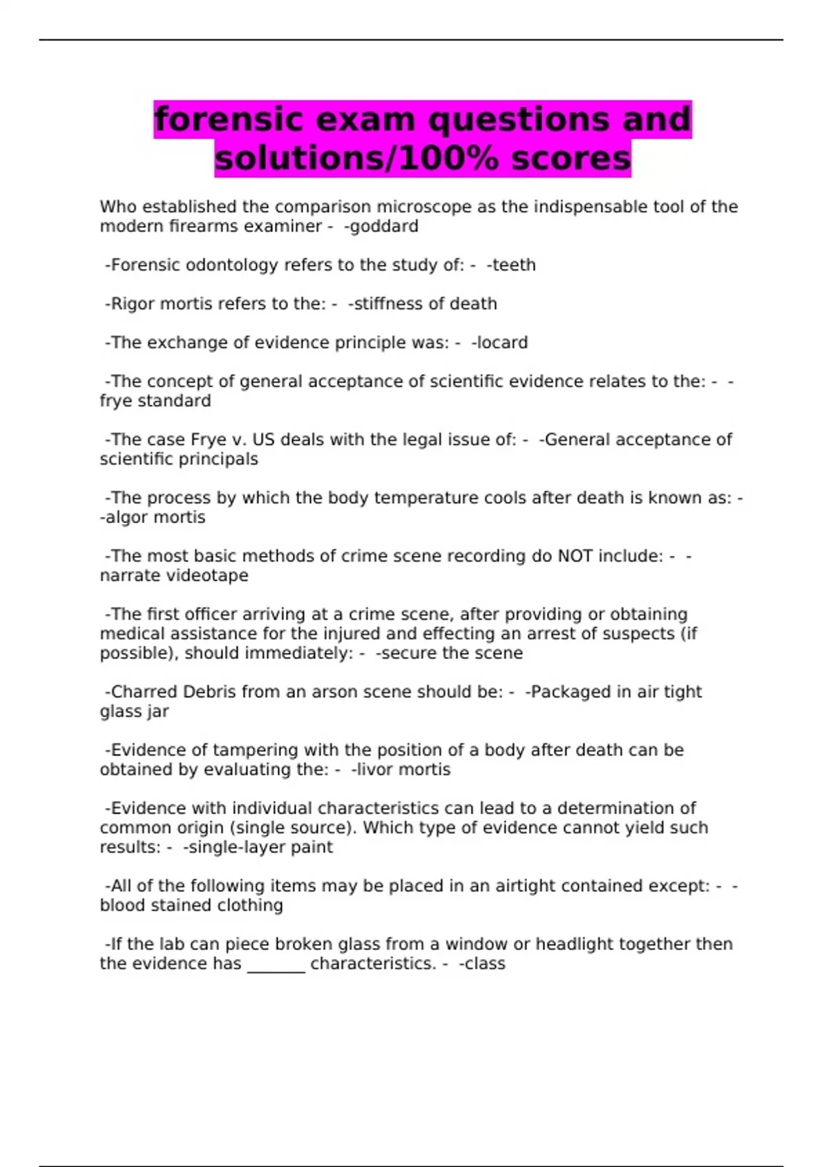 forensic exam questions and solutions/100% scores