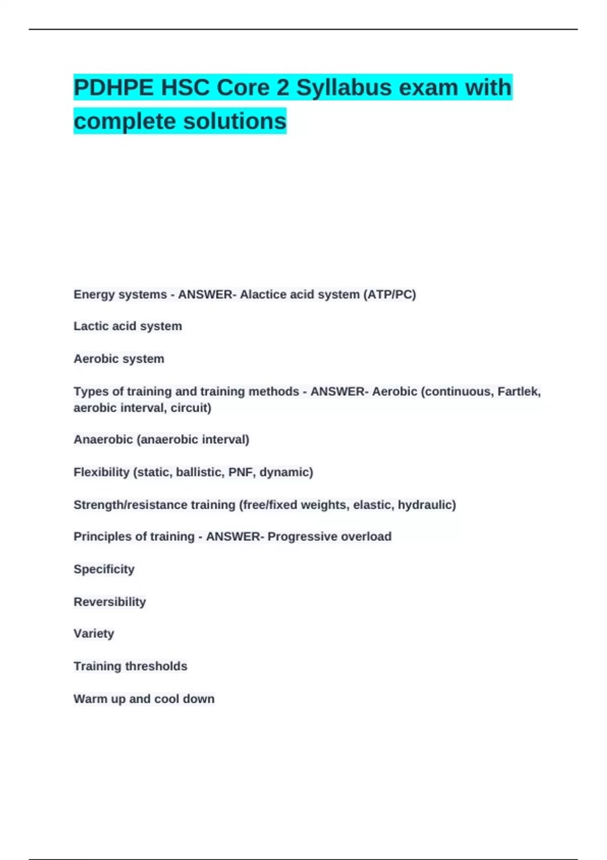 PDHPE HSC Core 2 Syllabus exam with complete solutions.