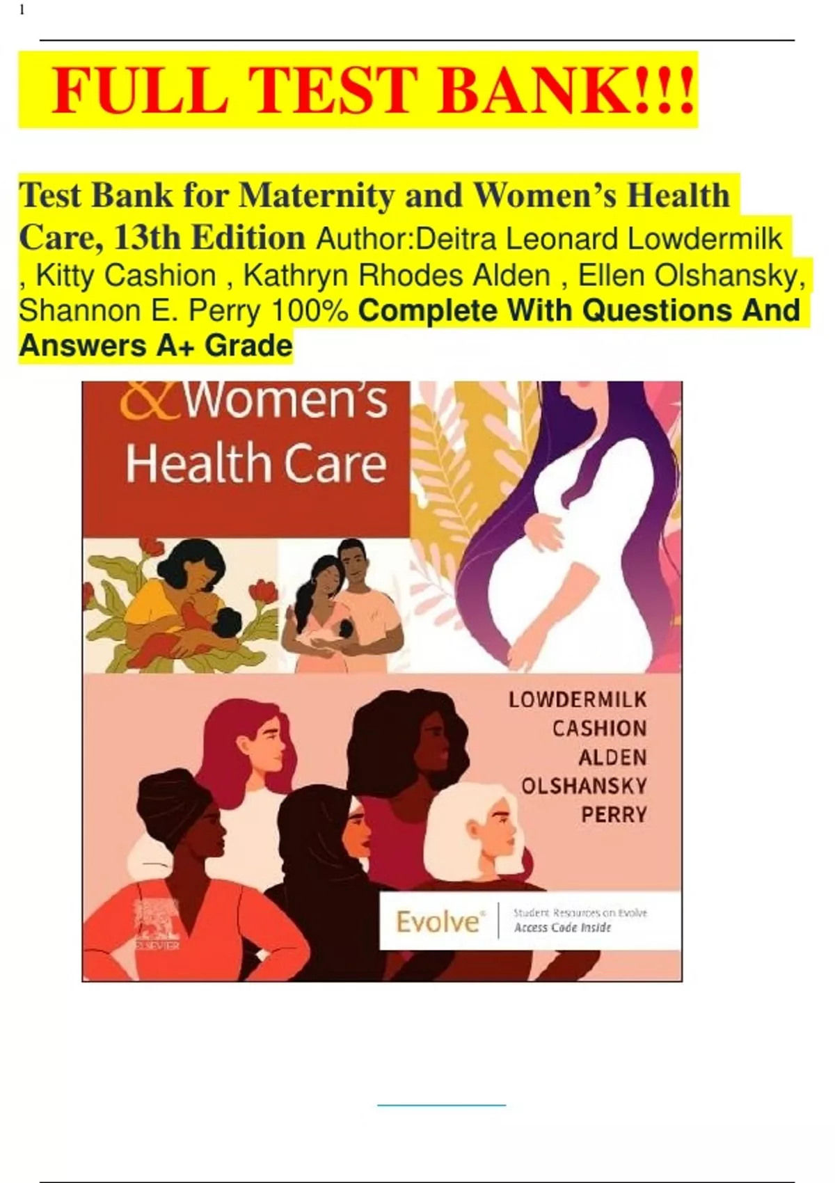 Test Bank for Maternity and Women’s Health Care, 13th Edition Author:Deitra Leonard Lowdermilk , Kitty Cashion , Kathryn Rhodes Alden , Ellen Olshansky, Shannon E. Perry 100% Complete With Questions And Answers A+ Grade