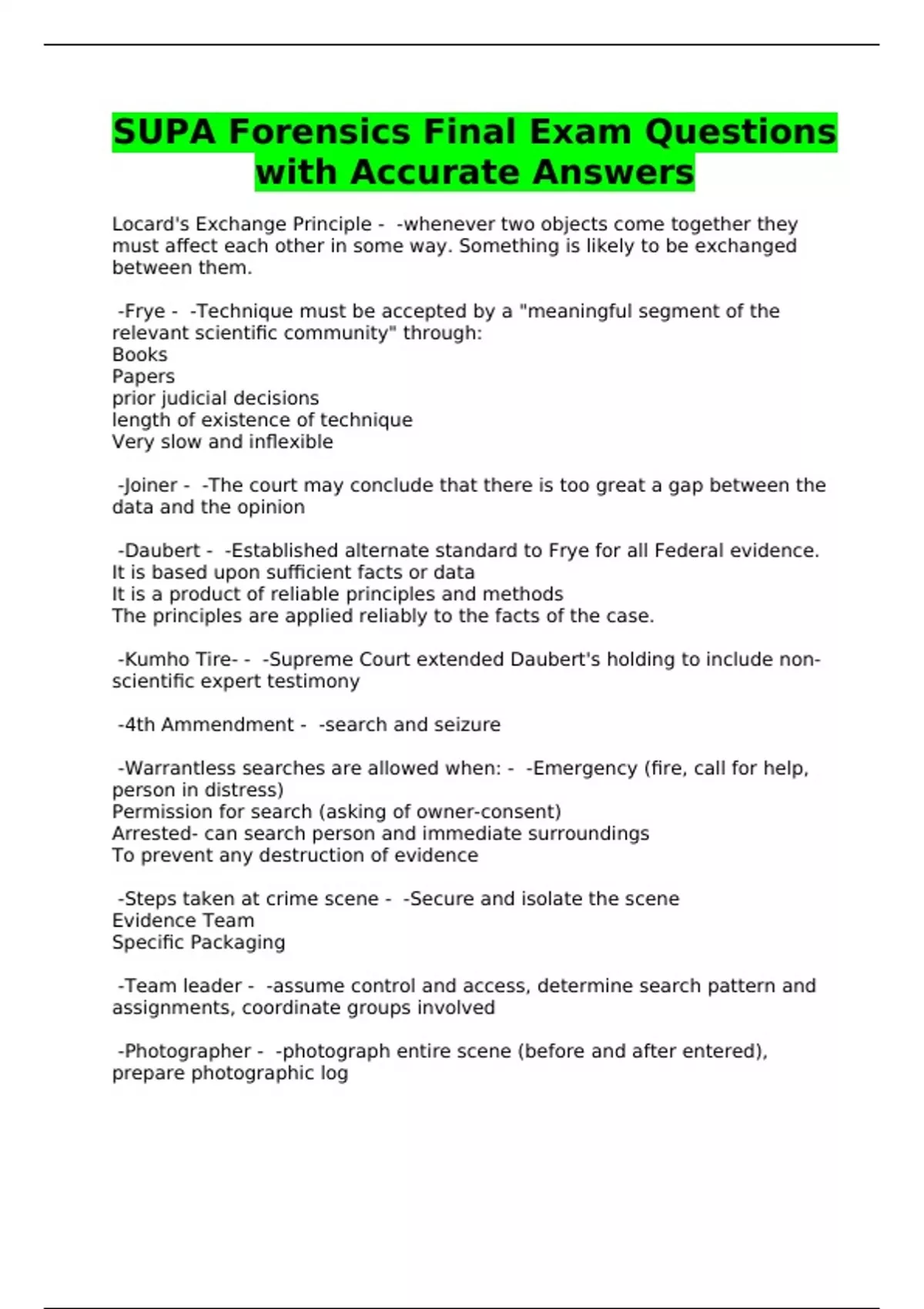 SUPA Forensics Final Exam Questions with Accurate Answers