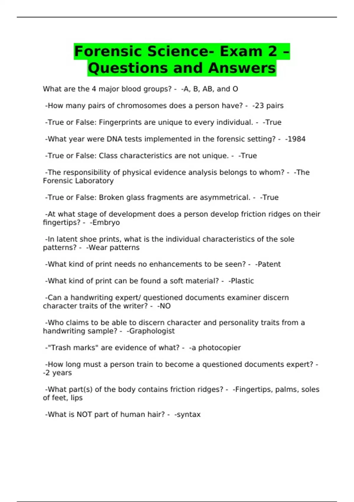 Forensic Science- Exam 2 – Questions and Answers