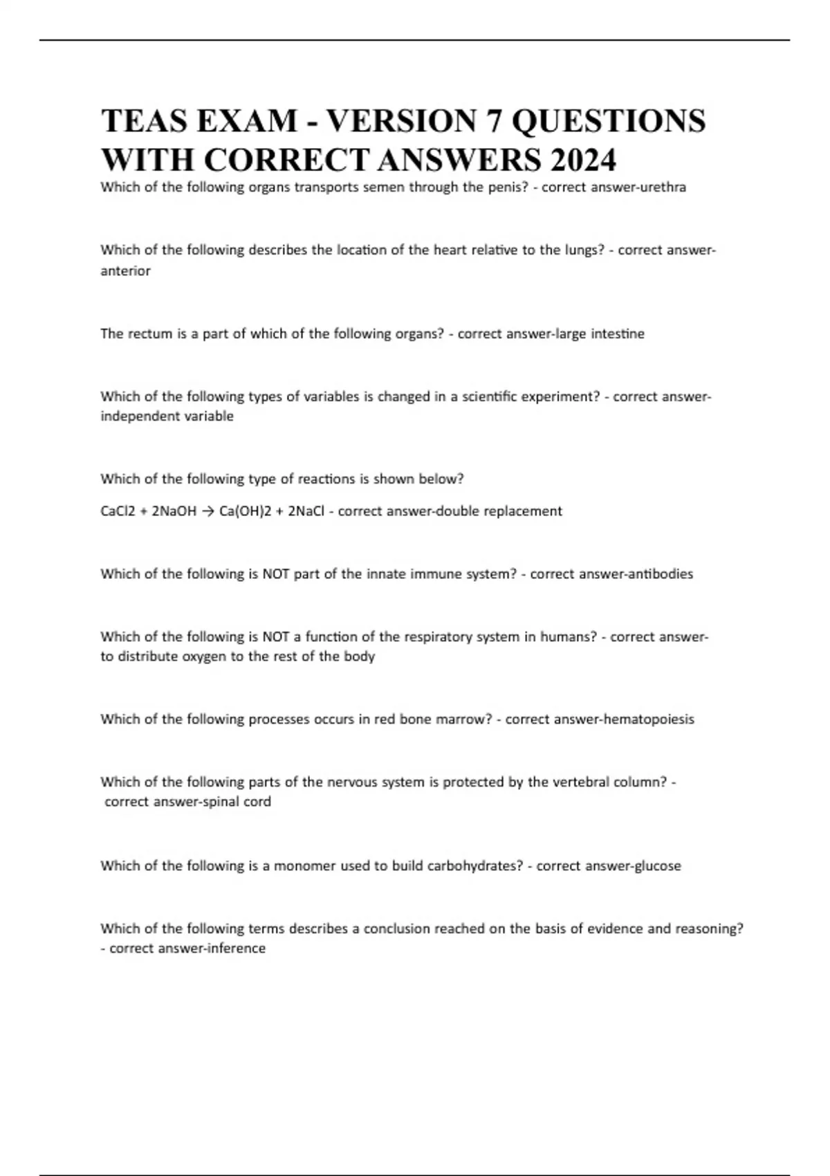 TEAS EXAM - VERSION 7 QUESTIONS