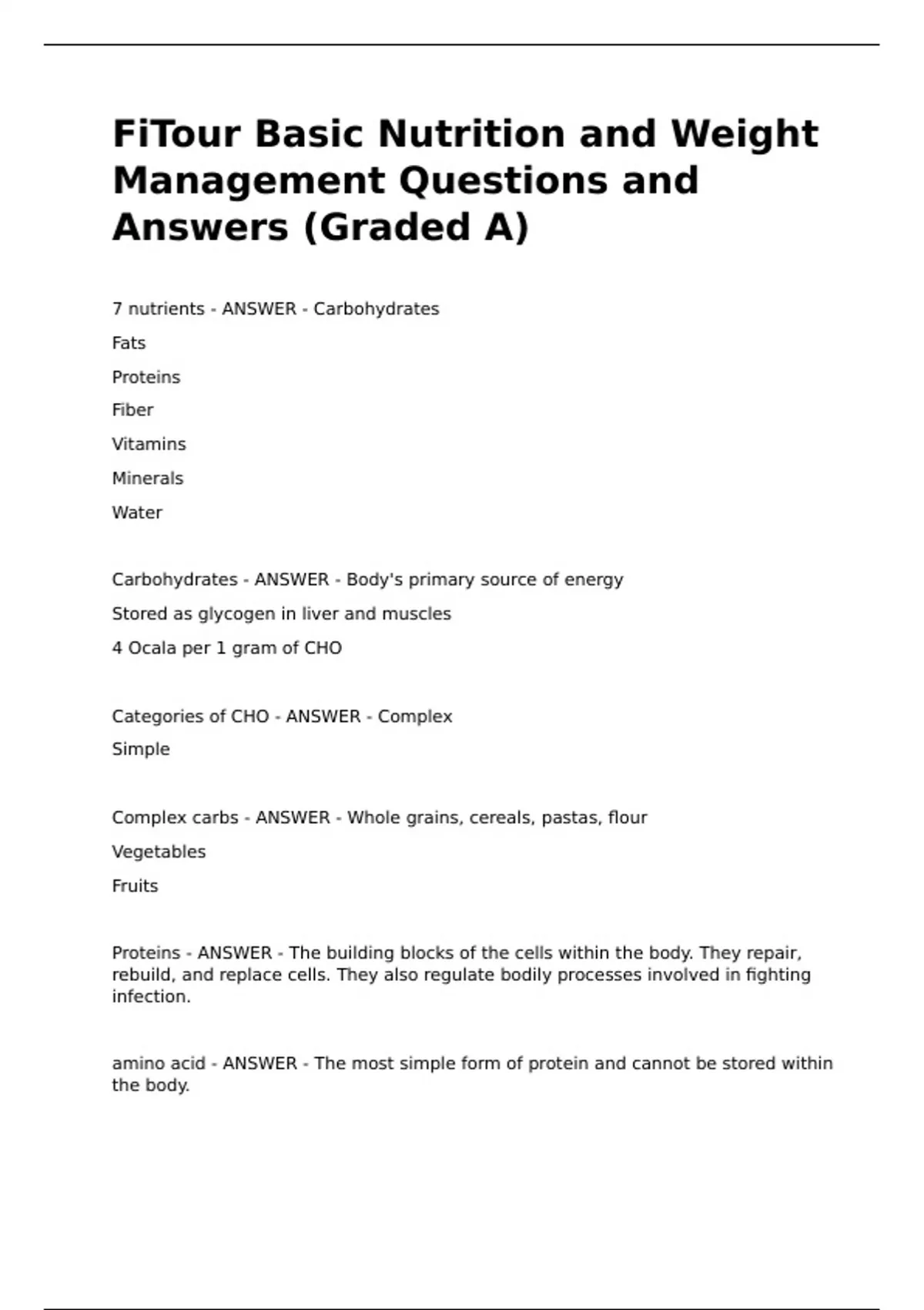 Carbohydrates - ANSWER - Body's primary source of energy