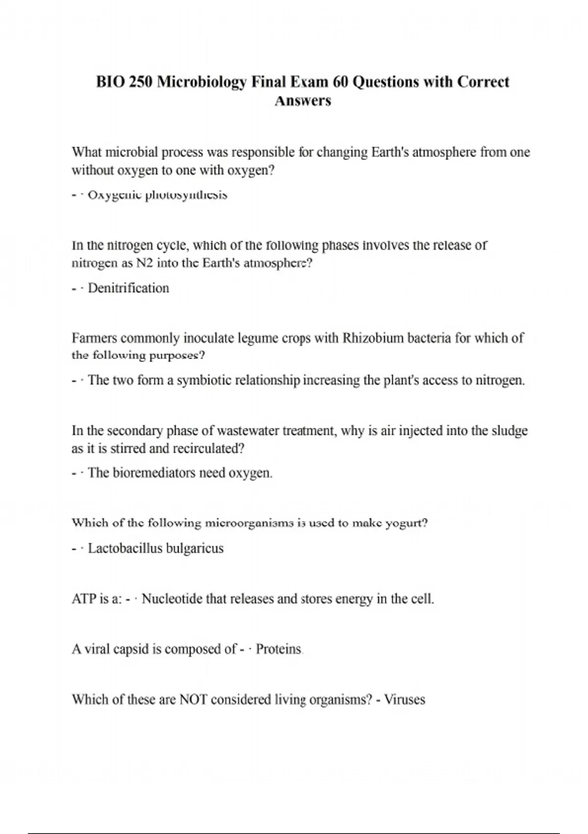 BIO 250 Microbiology Final Exam 60 Questions with Correct Answers