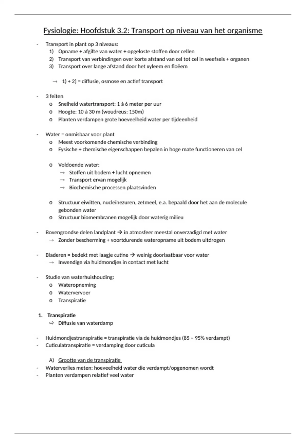 - Transport in plant op 3 niveaus: