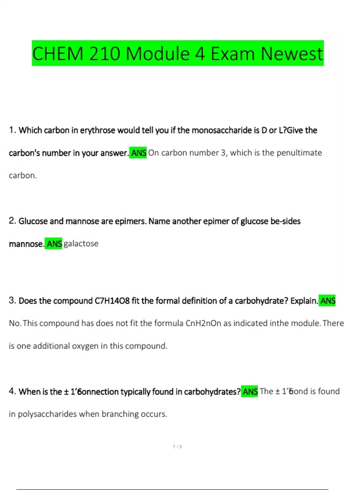 CHEM 210 Module 4 Exam Newest Questions and Answers (2023/2024) (Verified by Expert) CHEM 210 Module 4 Exam Newest Questions and Answers (2023/2024) (Verified by Expert) CHEM 210 Module 4 Exam Newest Questions and Answers (2023/2024) (Verified by Expert)